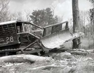 “A tree ain’t nothing to it,” said the corporal. “If it don’t come down with the blade you just rare back, stick that point in the trunk. Like splitting firewood. You could chainsaw them trees for days, but this here: snap crackle pop.”